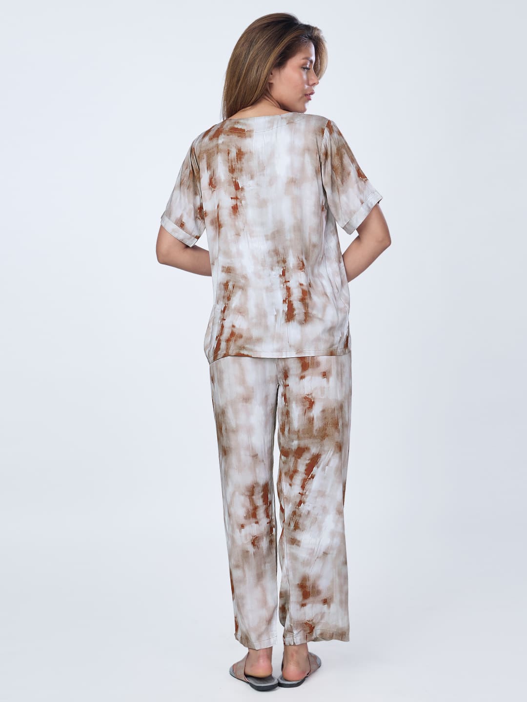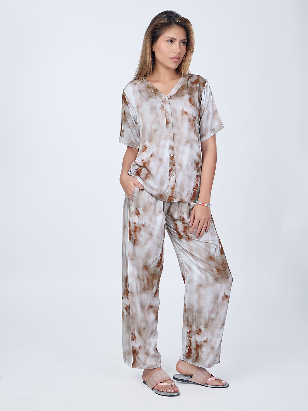 Made from breathable, high-quality fabric in soothing sienna, clay, and almond tones, this set blends calm and style. The soft V-neck, button-down top adds ease and polish, paired with relaxed-fit bottoms for all-day comfort. This set is ideal for mindful mornings, travel, or slow weekends.
